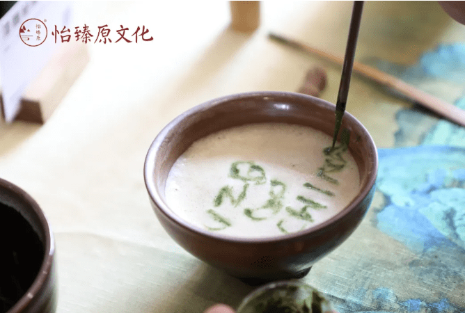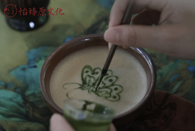 一边宋代点茶:七汤击拂,乳沫堆雪,青绿山水在盏中徐徐展开;