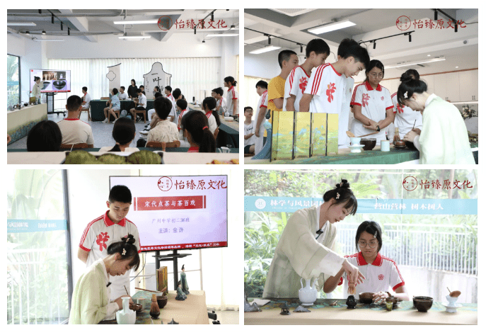 7月5日,蝉鸣与茶香交织,广州中学初二36班走进华南农业大学怡臻原研学课程,赴一场宋代点茶的非遗之约。