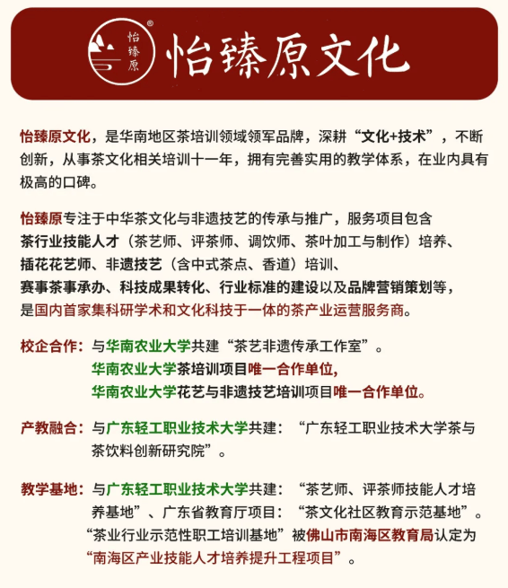 广州市穗华职业技术学校与广州市怡臻原文化有限公司共建的”关洁婷技能大师工作室”,是深入贯彻落实国家技能人才队伍建设政策的重要实践平台。该工作室由广州市高层次人才、华南农业大学茶艺非遗传承工作室领办人、国家一级茶艺师、国家一级评茶师关洁婷领衔,她不仅是2019年入选广州市”岭南英杰工程”(国家级重大人才工程后备人才)的杰出代表,更担任国家级茶艺师技能大赛裁判、广东省职业技能评价专家,在茶艺、评茶、调饮师、茶叶加工工等领域具有权威地位。